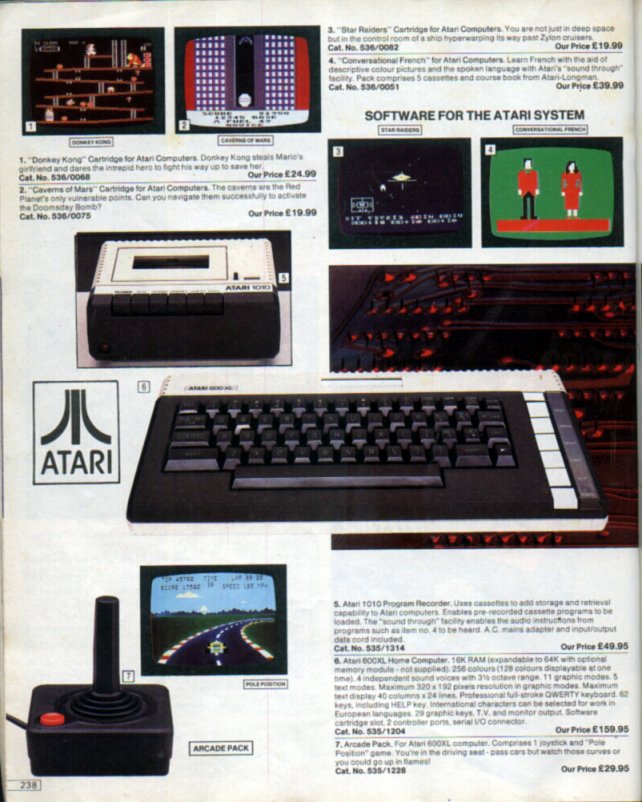 Here's a nice scan of the Atari page from the Christmas 1984 Argos catalogue. For