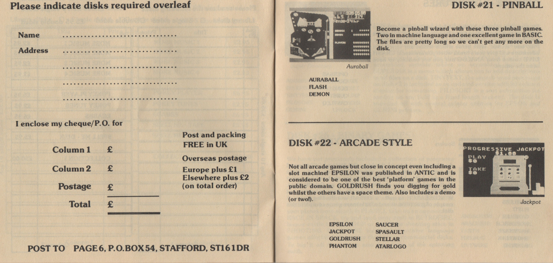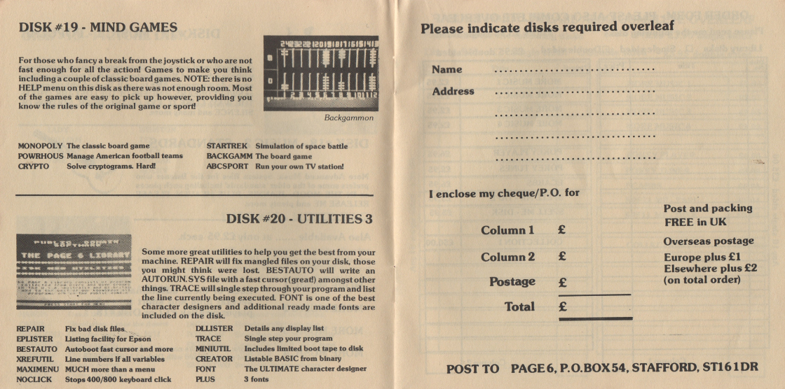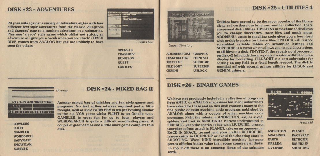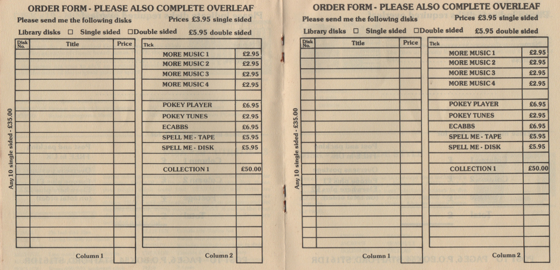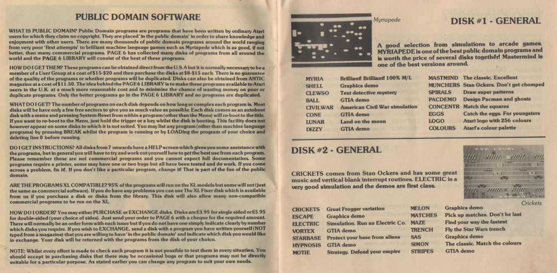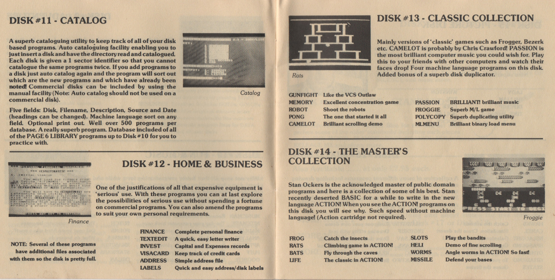 This is a complete scan of an early Page 6 Library Catalogue, from around the early/mid 1980's. It was presented as a small disk-shaped booklet.