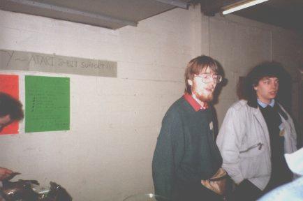 | This is me showing a bit of Digi-Studio that was never released. Digi-Studio was released in it's full form at the 1992 AMS show, and as a way to help sell it, I developed a proper keyboard to play tunes with during the day. It uses a specially adapted version of the Digi-Sutdio keyboard player, a hacked kid's synth and a box full of diodes! It was never released because it cost a fortune to build them! |