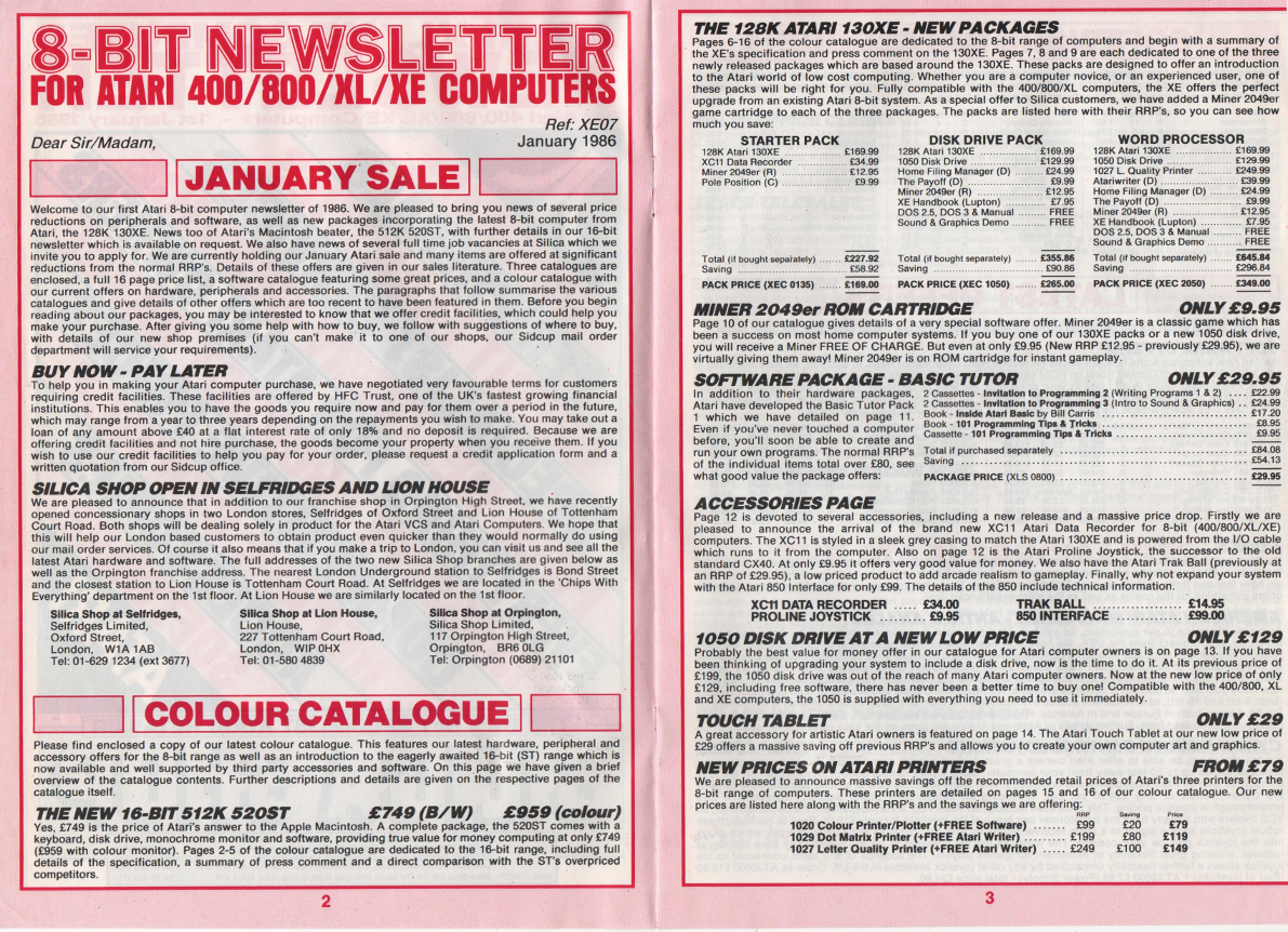 This is an 8 page newsletter from Silica Shop, dated January 1986. Note this is just for archiving purposes. Silica Shop does not exist any more.