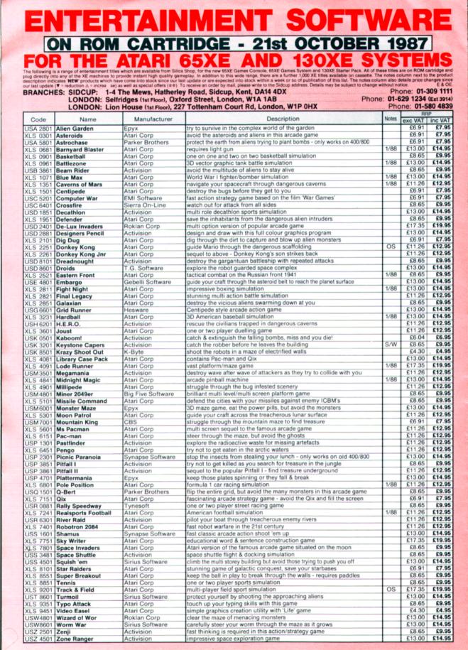 This is a 4 page flyer from Silica Shop advertising the XE Game System, 130XE, and games Cartridges. Note this is just for archiving purposes. Silica Shop does not exist any more.